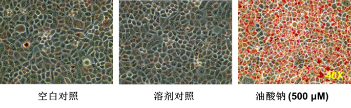 图 1. 本产品处理HepG2细胞24小时诱导脂肪肝细胞模型(油红染色)