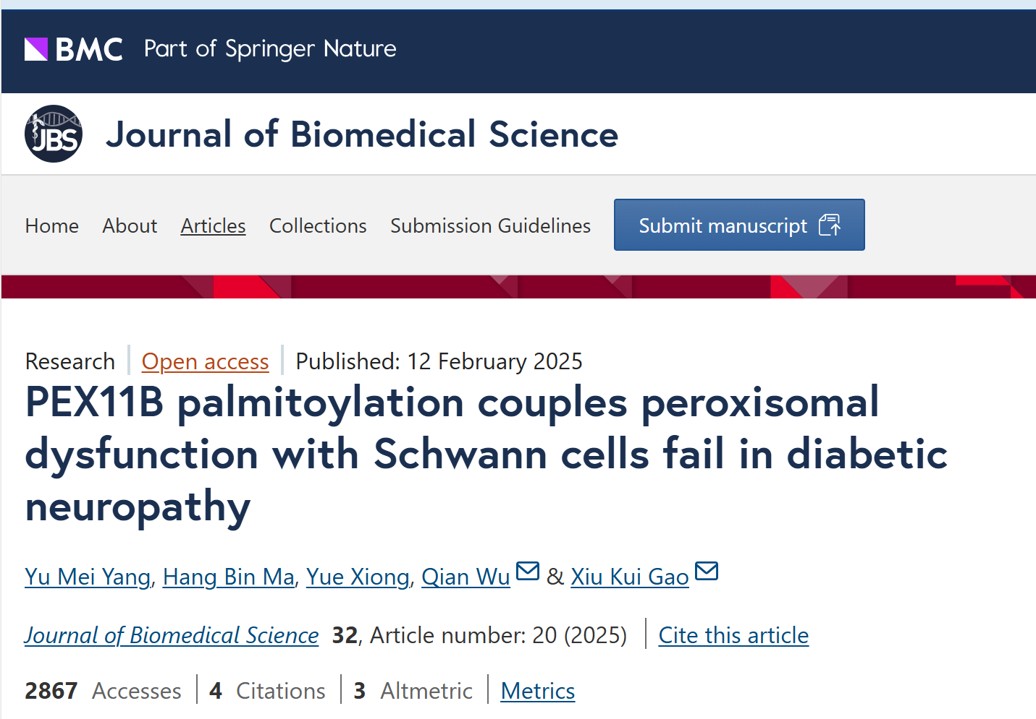 [客户文献] PEX11B palmitoylation couples peroxisomal dysfunction with Schwann cells fail in diabetic neuropathy Abstract Background Diabetic neuropathy (DN) is a prevalent and painful complication of diabetes; however, ... 超管 2025年11月19日