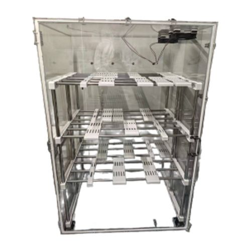 箱体安装静音风扇加速气体均匀分布,安装静音除湿装置,保证箱体饲养环境清洁;